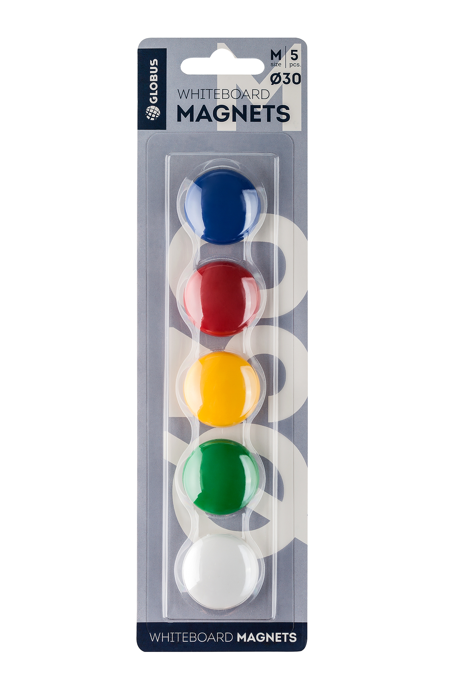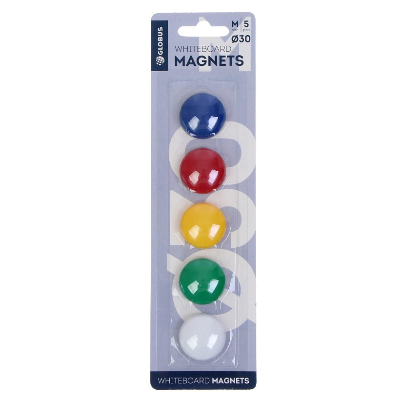 Магниты для доски 30 мм 5 шт/уп, цветные круглые Globus МЦ30