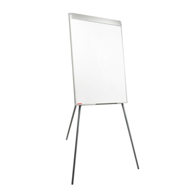 Белое лаковое покрытие предназначено для письма специальными маркерами для белой доски. Размер доски – 100х70 см. Регулируется по высоте до 164 см. Устанавливается на треноге. Металлическая поверхность позволяет размещать объявления при помощи магнитов. Блокнот крепится при помощи неподвижных винтов. Снабжена полочкой для аксессуаров. Для защиты рабочей поверхности доски на нее нанесена защитная пленка. Перед началом работы необходимо удалить защитную пленку.