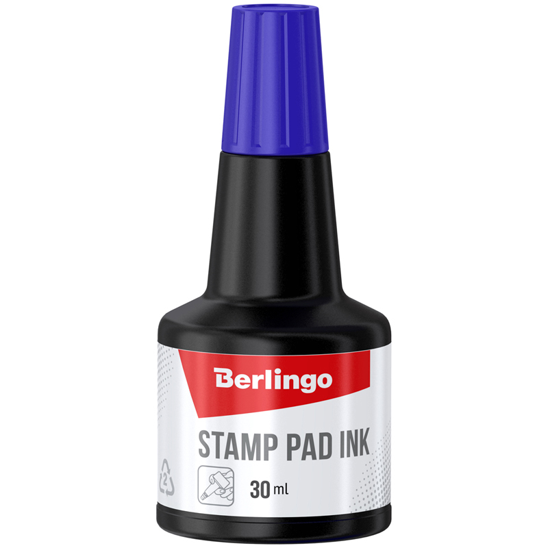 Штемпельная краска Berlingo 30мл синяя на водной основе, флакон оснащен дозатором