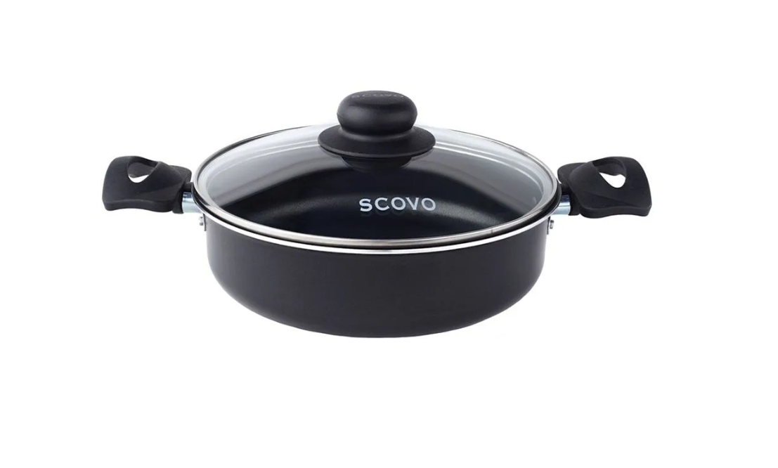 Сковорода-жаровня d=24 см ScovoConsul RC-040, алюминий, антипригарное покрытие, крышка стекло, черный,