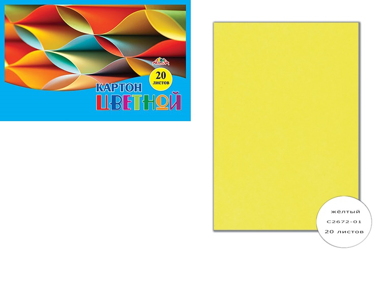 Цветной Картон "Апплика. Офис. Желтый" формат А-4, 20 листов, цвет желтый, упаковка ПЭТ