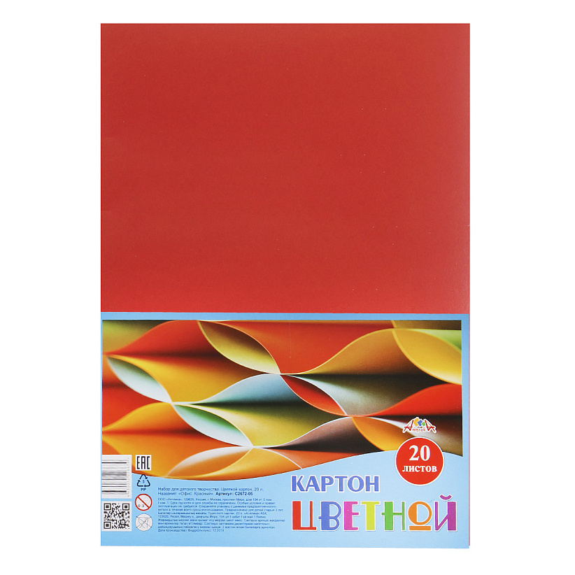 Цветной Картон "Апплика. Офис. Красный" формат А-4, 20 листов, цвет красный, упаковка ПЭТ