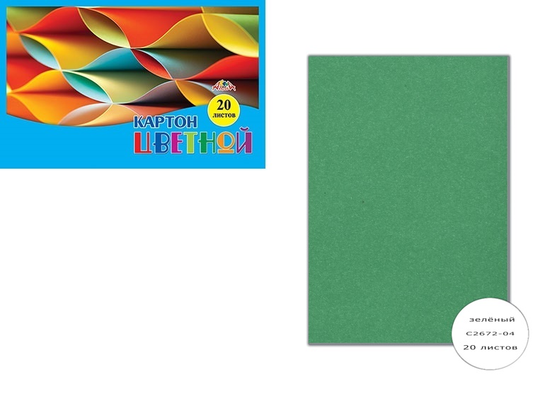 Цветной картон "Апплика. Офис. Зеленый" формат А-4, 20 листов, цвет зеленый, упаковка ПЭТ