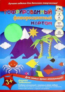 Цветной картон "Апплика Ассорти" формат А-4, 4 листа 4 цвета, гофрированный картон флюоресцентный, упаковка ПЭТ