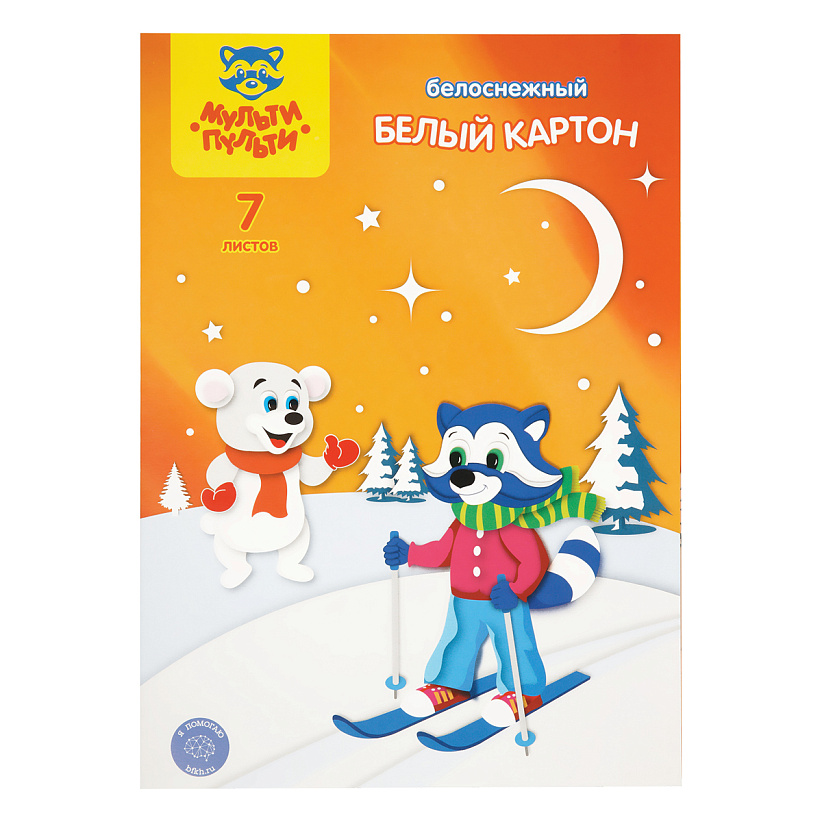 Качественный мелованный картон белого цвета «Мульти-Пульти» формата А4, 7 листов в папке, мелованный