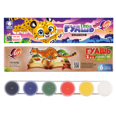 Гуашь 6 цветов Луч "ZOO" 15 мл, блок-тара