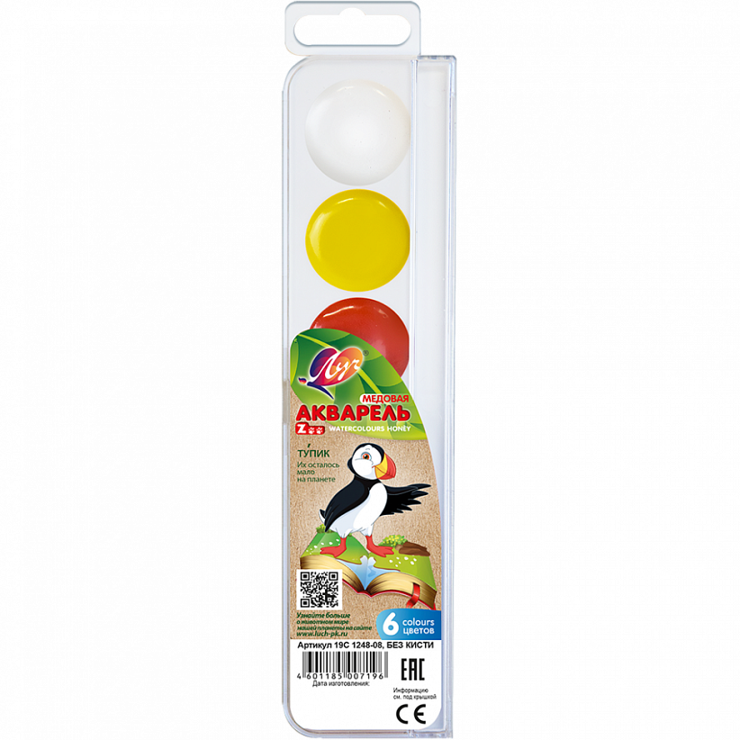 Краски акварельные медовые 6 цветов Луч «Zоо» , в картонном пенале, без кисти