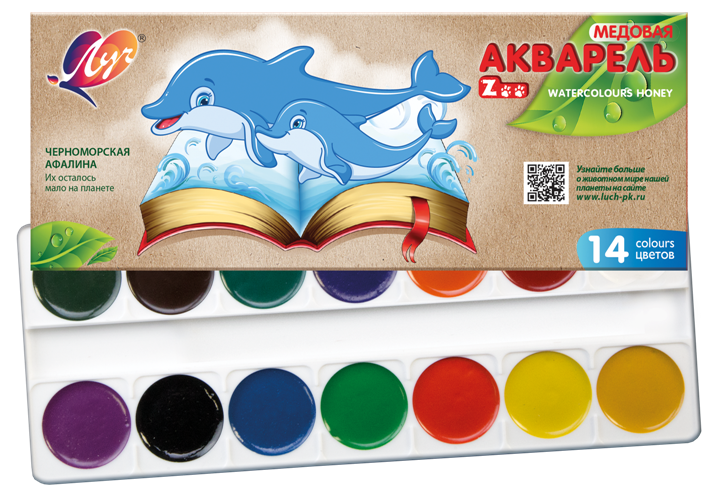 Краски акварельные медовые 14 цветов Луч «Zоо» , картонный пенал, без кисти