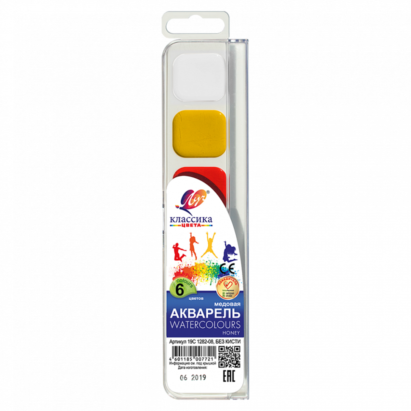 Высококачественная акварельная краска ЛУЧ в наборе из 6 цветов для детского творчества с яркими и чистыми цветами, изготовленная по классической рецептуре с использованием мёда. Прекрасно размывается и разносится по поверхности бумаги. Краски смешиваются между собой, сохраняя насыщенность цвета. Краски упакованы в пластмассовую коробочку с прозрачной крышкой, квадратные кюветы.