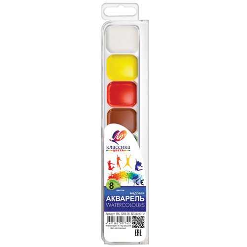 Краски акварельные медовые 8 цветов Луч "Классика" в пластиковой упаковке, без кисти