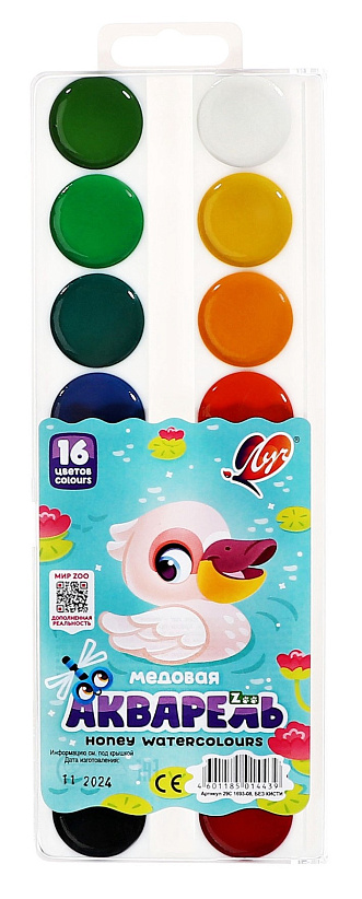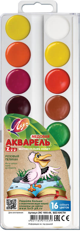 Краски акварельные медовые 16 цветов ЛУЧ "Zoo ", в пластиковом пенале, без кисти