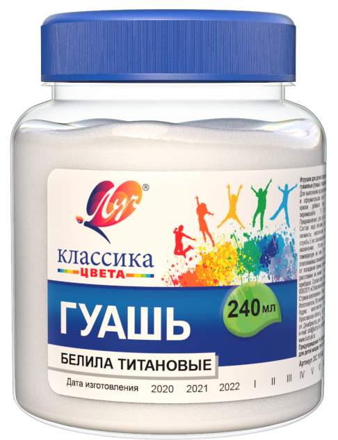 Гуашь "Луч" 240 мл белила титановые, цинковые, оттенок белый, укрывистость максимальная
