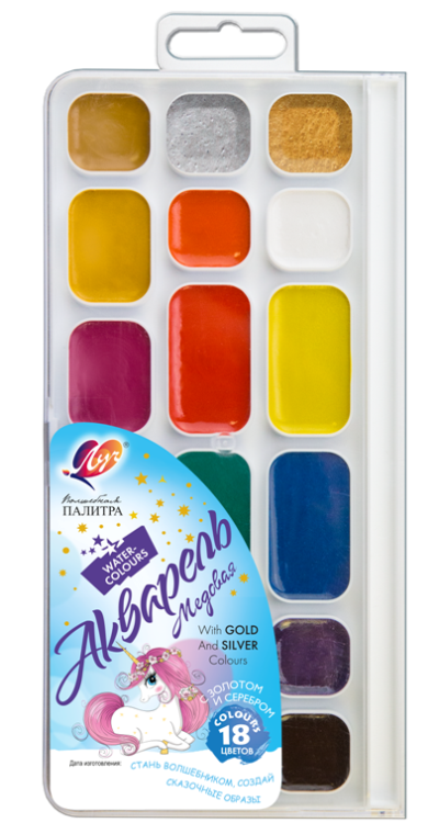 Краски акварельные медовые 18 цветов Луч "Волшебная палитра" (цвет золото и серебро) пластиковая коробка, без кисти