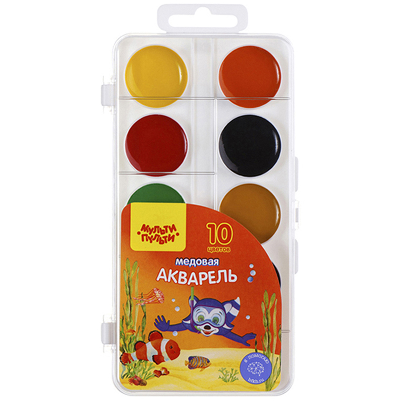 Краски акварельные медовые 10 цветов Мульти-Пульти, пластик, европодвес без кисти