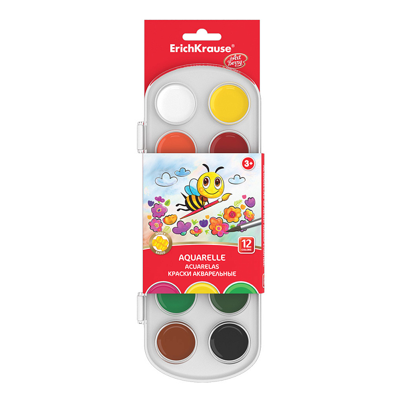 Краски акварельные медовые 12 цветов ErichKrause ArtBerry, в пластиковом пенале, без кисти