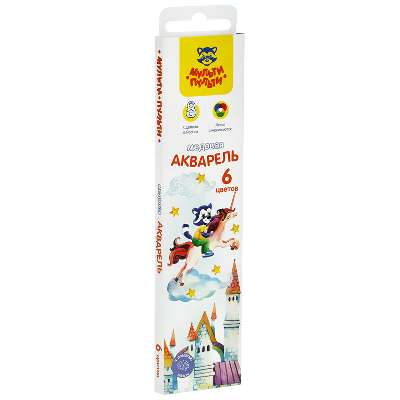 Краски акварельные медовые 6 цветов Мульти-Пульти картонная коробка, без кисти, яркие насыщенные цвета.