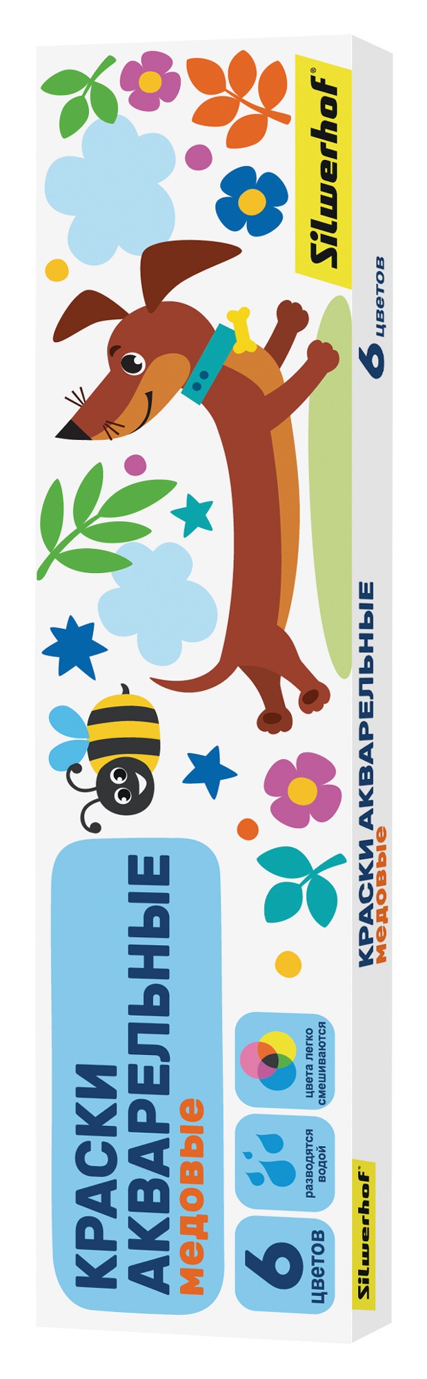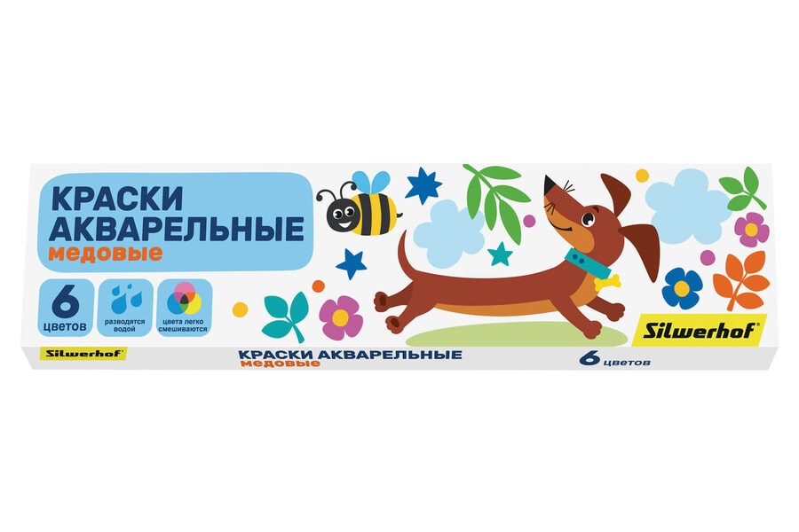Краски медовые Silwerhof Веселые друзья 6 цветов без кисти картонная коробка, имеют яркие насыщенные цвета, дают множество оттенков при смешивании и обеспечивают однородное окрашивание.