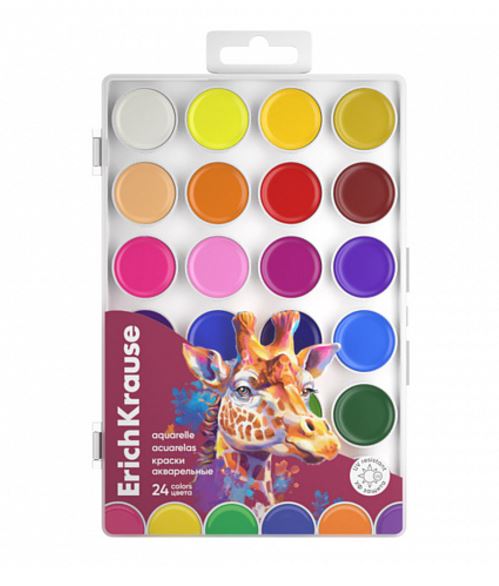 Краски акварельные 24 цвета ErichKrause Safari 61379 с УФ защитой яркости, в пластиковом пенале, без кисти