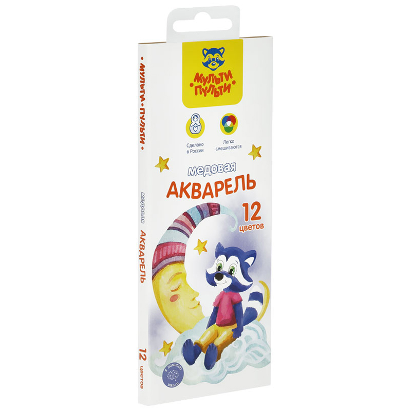 Краски акварельные Мульти-Пульти "Енот в сказке" медовые,12 цветов без кисти,картонная коробка.