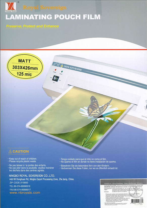 Заготовки для ламинирования матовая поверхность А3 303х426мм 125мкр 100шт.уп.