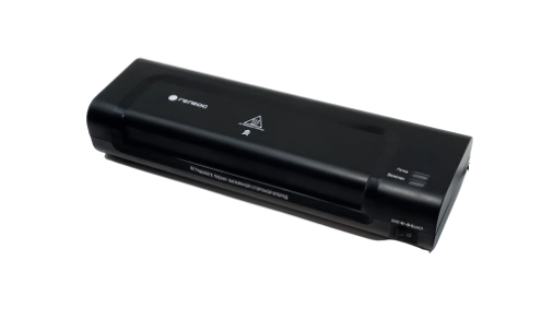 Ламинатор "ГЕЛЕОС ЛМ А4 Комбо", пленка 75-150 мкм, скорость 30 см/мин, нагрев 4мин, 2 вала, горячее ламинирование. В комплект входит резак, обрезчик углов, набор пленок.